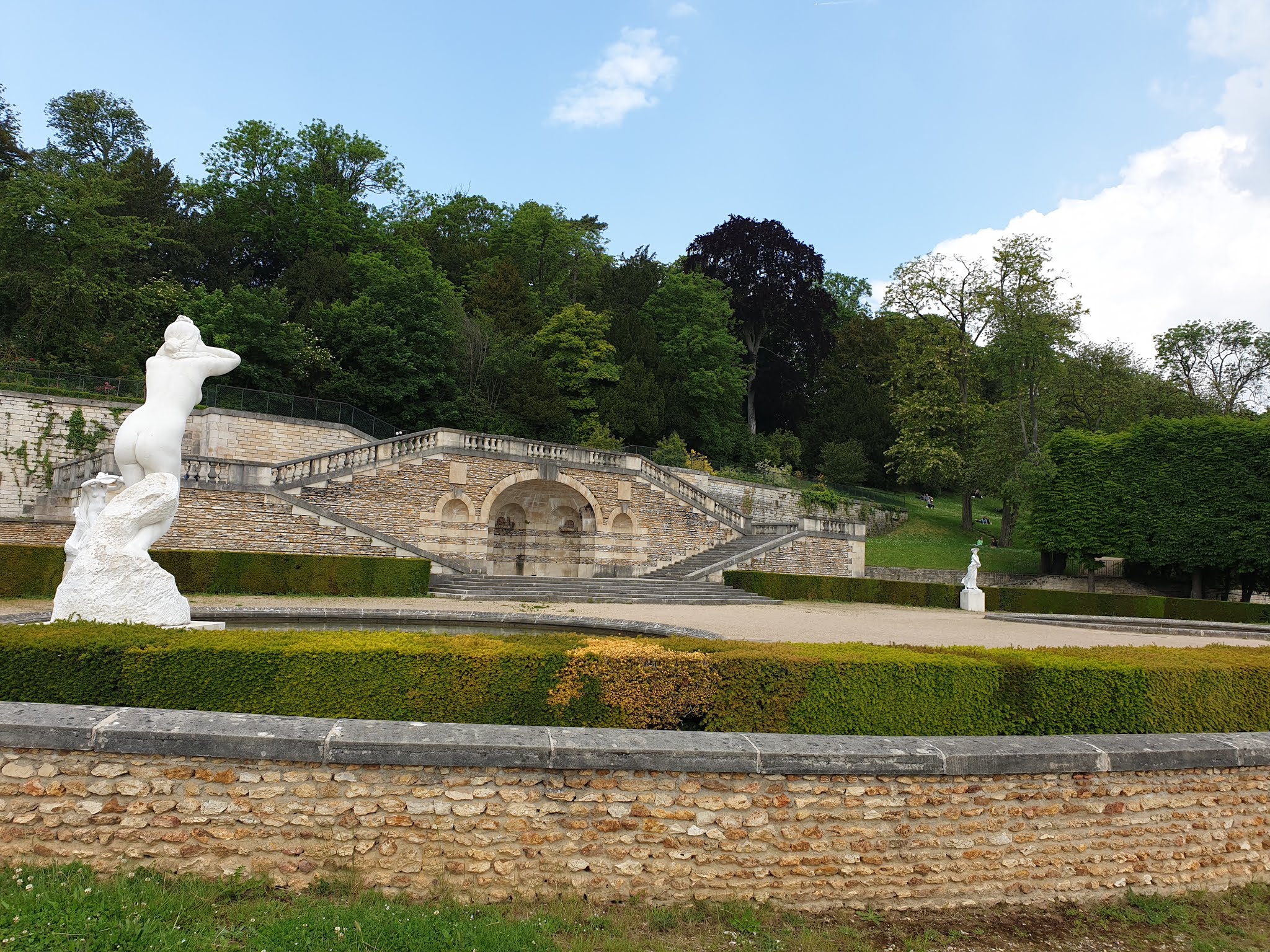 Très grand parc offrant de grands espaces verts (beaucoup de dénivelés), de nombreuses fontaines et sculptures ainsi qu’une cascade, vue panoramique sur la Seine et Paris (Tour Eiffel)… Néanmoins, très déçue car l’ensemble des jets d’eau n’était pas en fonctionnement (cf. d’ailleurs l’affichette où il en est, pourtant, fait l’éloge ; l’un des grands attraits de ce Domaine/Parc. A signaler également, la cascade ne fonctionnait pas non plus/pas d’avantage ! La promenade y est toutefois agréable.