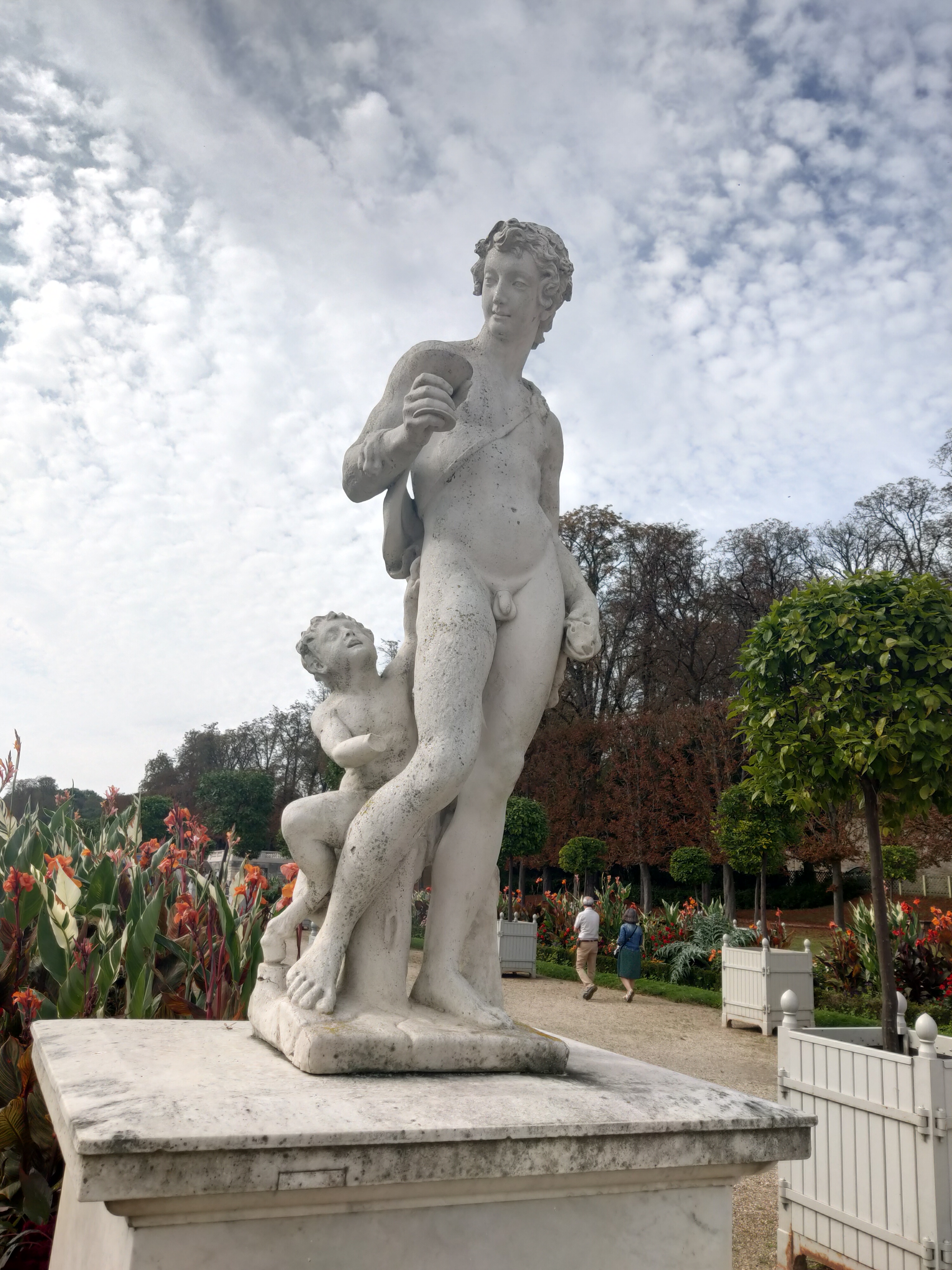 Mon ami m'a fait découvrir ce très beau parc situé aux portes de la capitale. La promenade a été agréable en ce début d'automne. Les arbres commençent à perdre leurs feuilles mais les jardins à la Française restent fleuris et offrent un vaste panorama sur Paris avec la Tour Eiffel en toile de fond. J'ai eu beaucoup de plaisir à me promener dans les allées du Parc : même s'il n'y a plus de château, il subsiste de très belles statues, des bassins, des terrasses à découvrir au fil de la promenade. Le jour de notre venue, le petit musée du domaine de St Cloud était fermé. On a utilisé une borne interactive extérieure qui permet de découvrir les grandes dates de l'Histoire du Château détruit par un incendie lors de la Commune de Paris. A la fin de la promenade, nous avons fait une halte gourmande à l'Orangerie, le petit restau salon de thé du Parc.